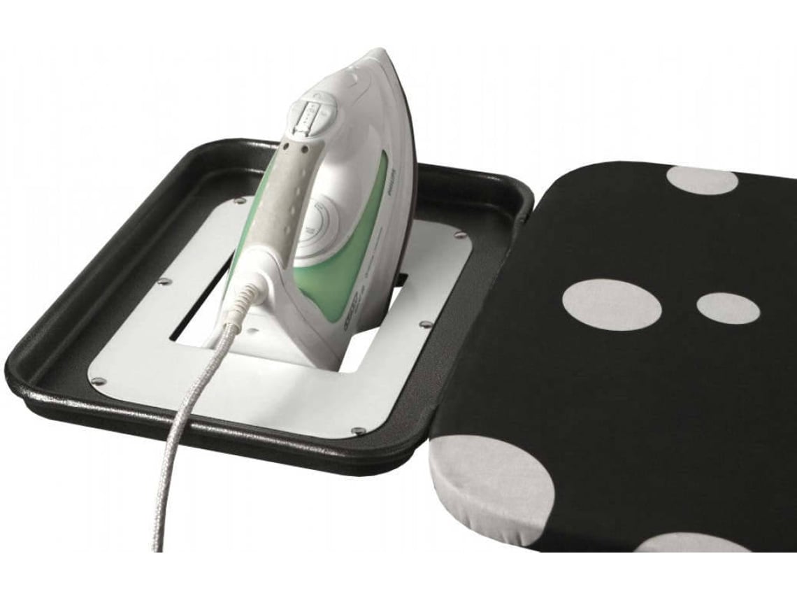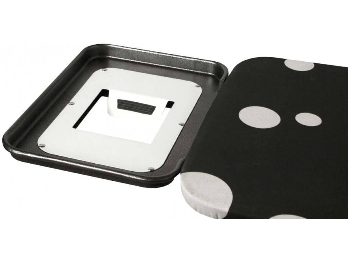 Tábua de engomar para ferro de caldeira, com cobertura 100% permeável ao vapor. Pousa ferros em chapa com proteções em silicone.